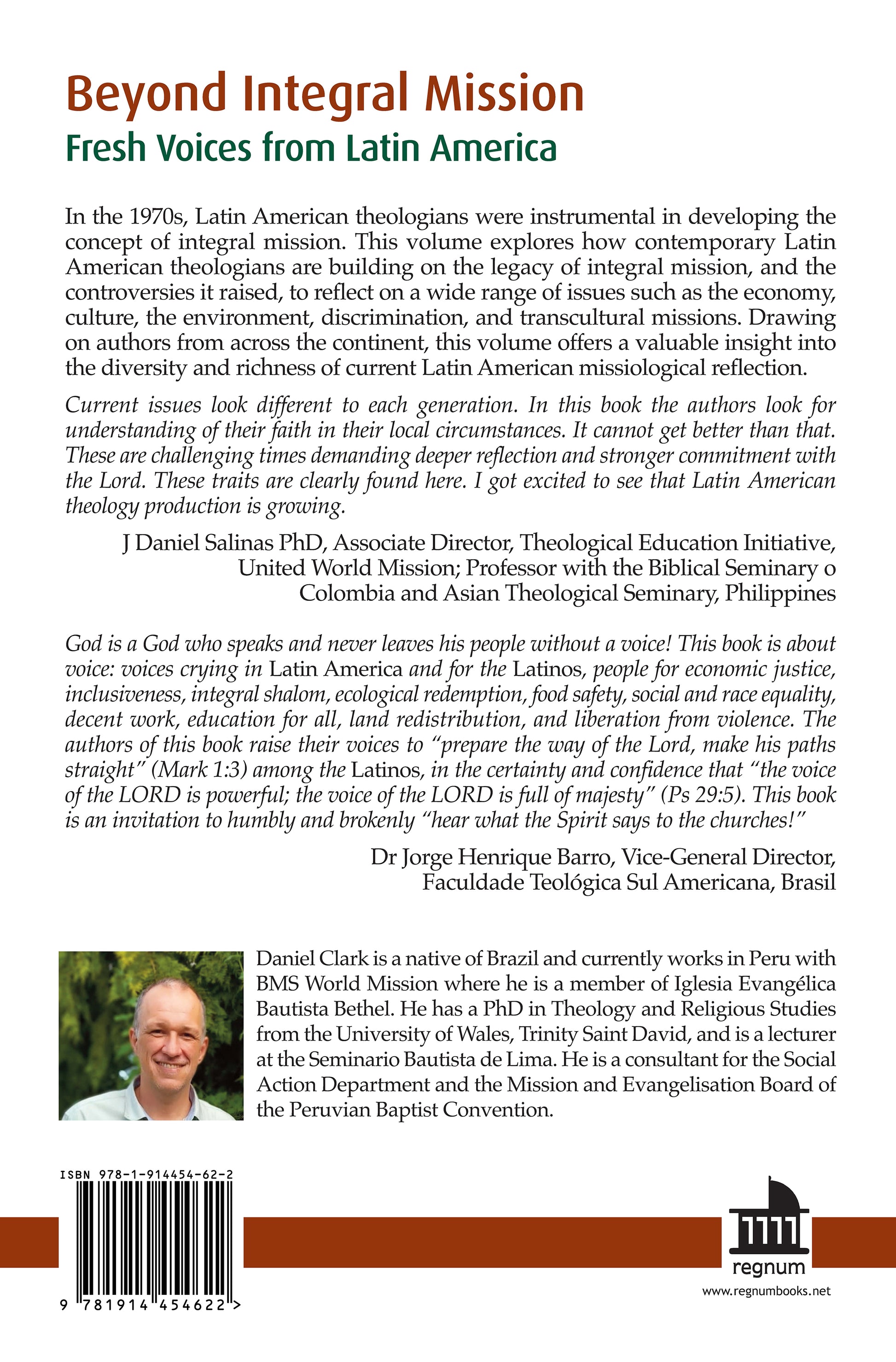 God is a God who speaks and never leaves his people without a voice! This book is about voice: voices crying in Latin America and for the Latinos, people for economic justice, inclusiveness, integral shalom, ecological redemption, food safety, social and race equality, decent work, education for all, land redistribution, and liberation from violence. The authors of this book raise their voices to “prepare the way of the Lord, make his paths straight” (Mark 1:3) among the Latinos, in the certainty and confidence that “the voice of the LORD is powerful; the voice of the LORD is full of majesty” (Ps 29:5). This book is an invitation to humbly and brokenly “hear what the Spirit says to the churches!”