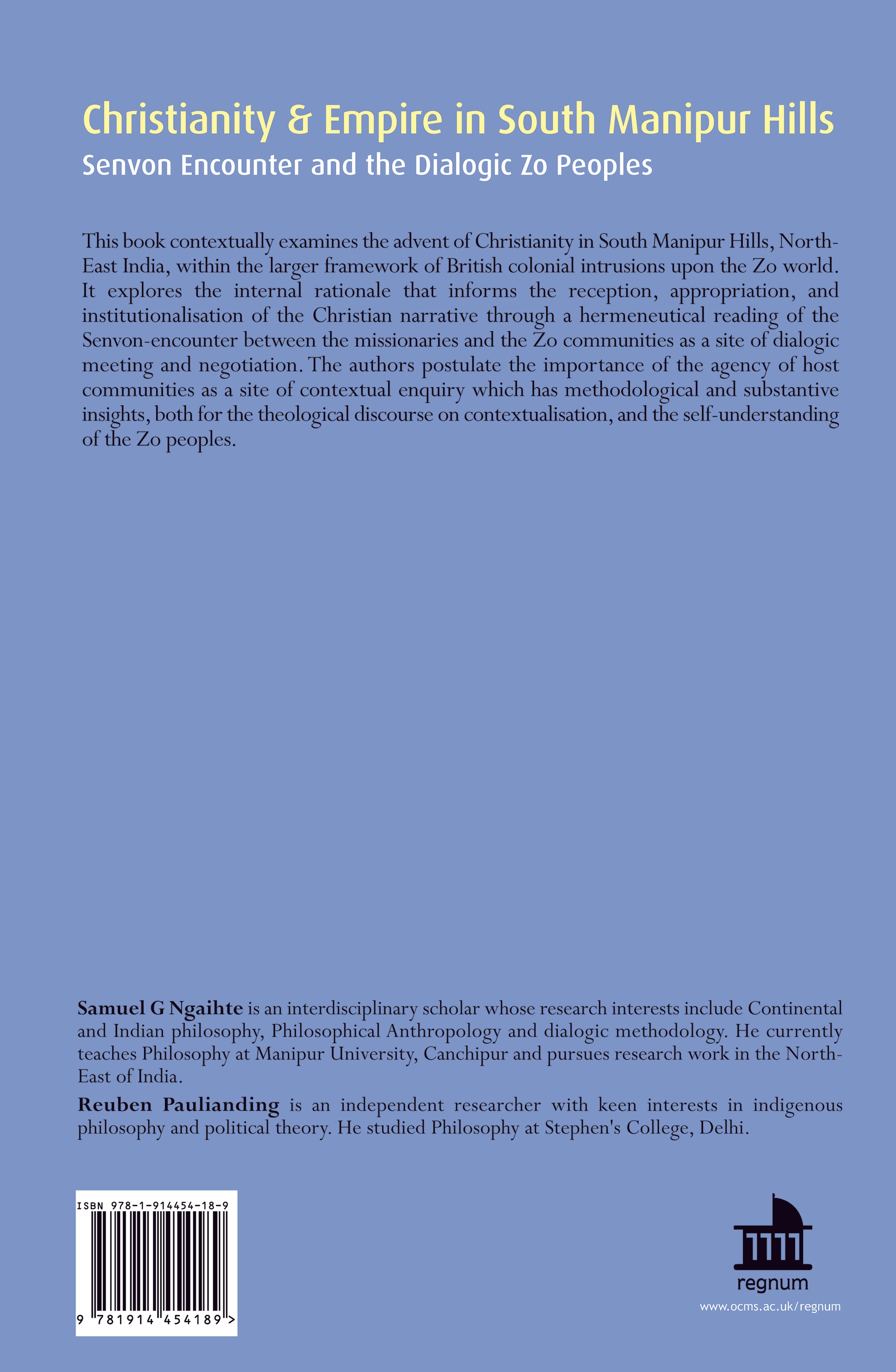 This book contextually examines the advent of Christianity in South Manipur Hills, North- East India, within the larger framework of British colonial intrusions upon the Zo world. It explores the internal rationale that informs the reception, appropriation, and institutionalisation of the Christian narrative through a hermeneutical reading of the Senvon-encounter between the missionaries and the Zo communities as a site of dialogic meeting and negotiation. The authors postulate the importance of the agency of host communities as a site of contextual enquiry which has methodological and substantive insights, both for the theological discourse on contextualisation, and the self-understanding of the Zo peoples.