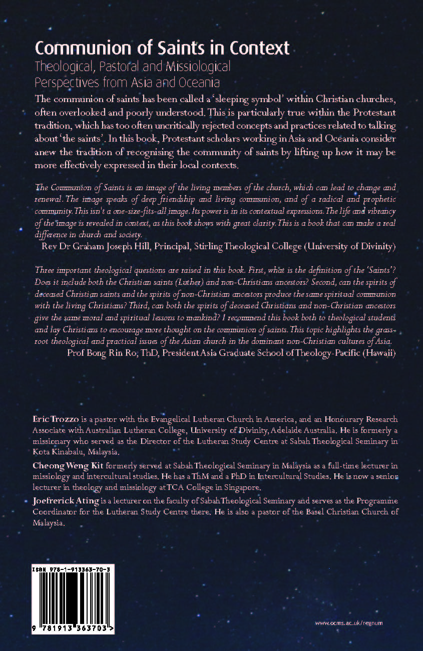The communion of saints has been called a 'sleeping symbol' within Christian churches, often overlooked and poorly understood. This is particularly true within the Protestant tradition, which has too often uncritically rejected concepts and practices related to talking about 'the saints'. In this book, Protestant scholars working in Asia and Oceania consider anew the tradition of recognising the community of saints by lifting up how it may be more effectively expressed in their local contexts.