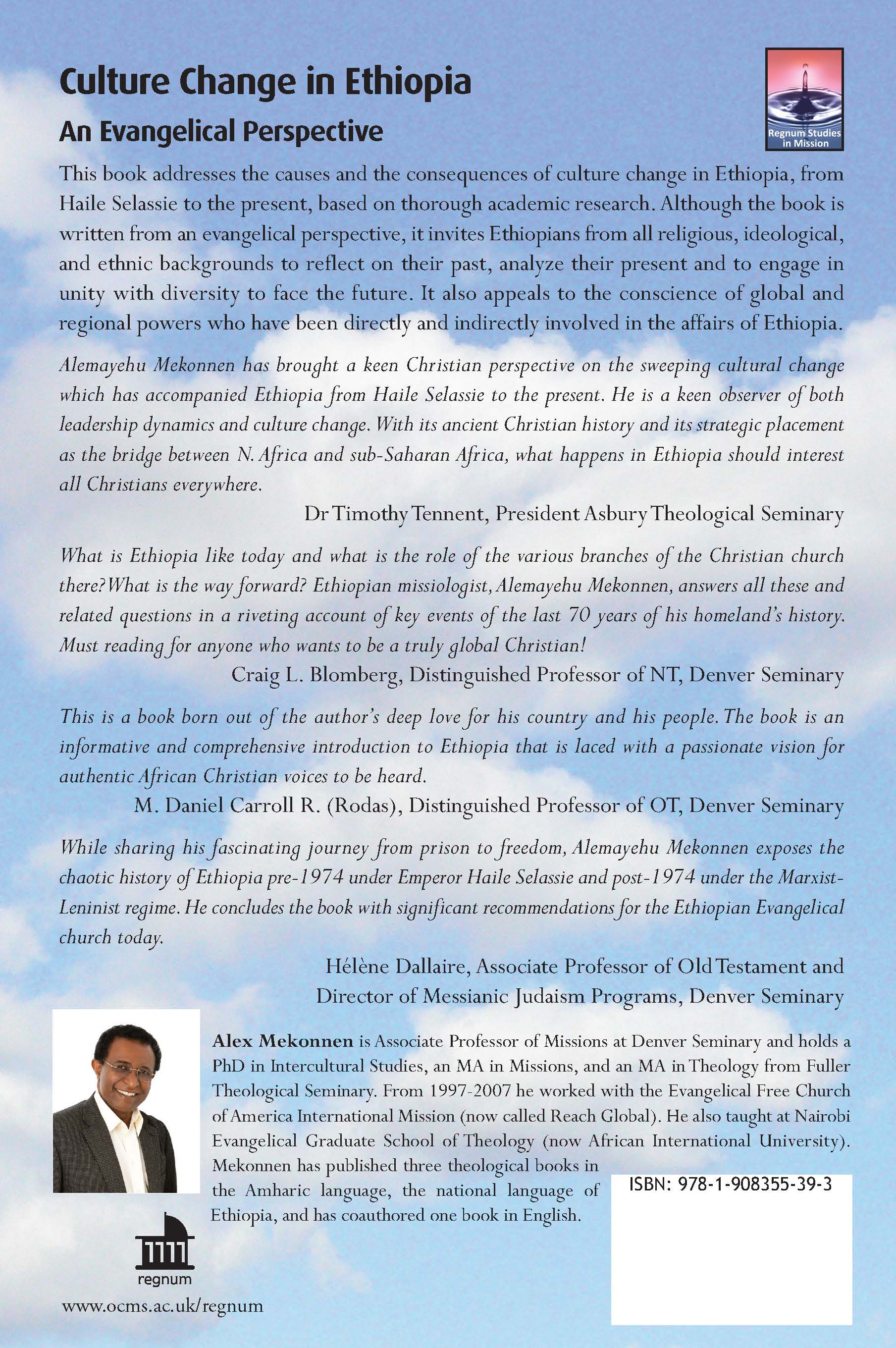 This book addresses the causes and the consequences of culture change in Ethiopia, from Haile Selassie to the present, based on thorough academic research. Although the book is written from an evangelical perspective, it invites Ethiopians from all religious, ideological, and ethnic background to reflect on their past, analyze their present and to engage in unity with diversity to face the future. It also appeals to the conscience of global and regional powers who have been directly and indirectly involved in the affairs of Ethiopia.