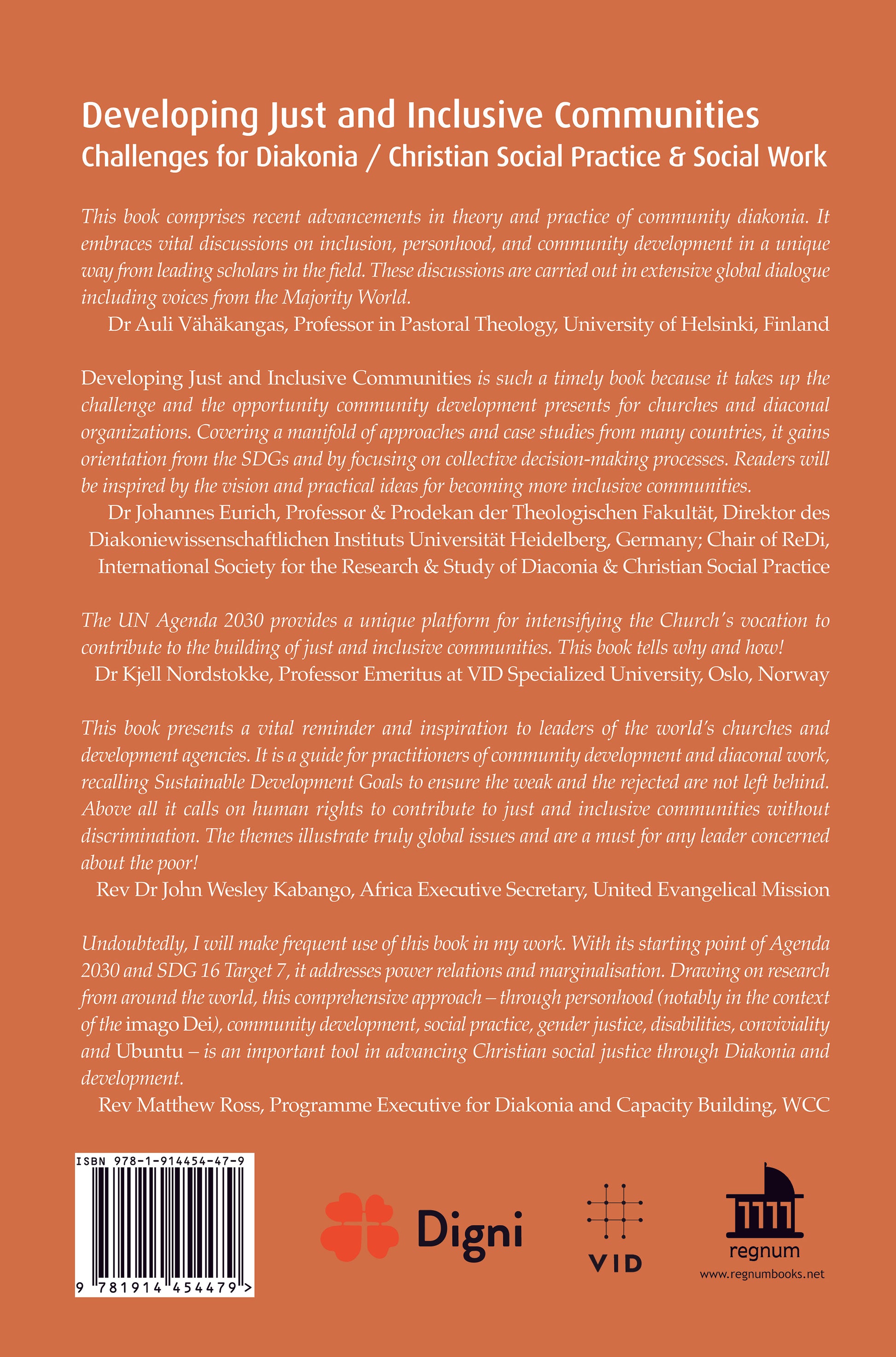 Developing Just and Inclusive Communities is such a timely book because it takes up the challenge and the opportunity community development presents for churches and diaconal organizations. Covering a manifold of approaches and case studies from many countries, it gains orientation from the SDGs and by focusing on collective decision-making processes. Readers will be inspired by the vision and practical ideas for becoming more inclusive communities.