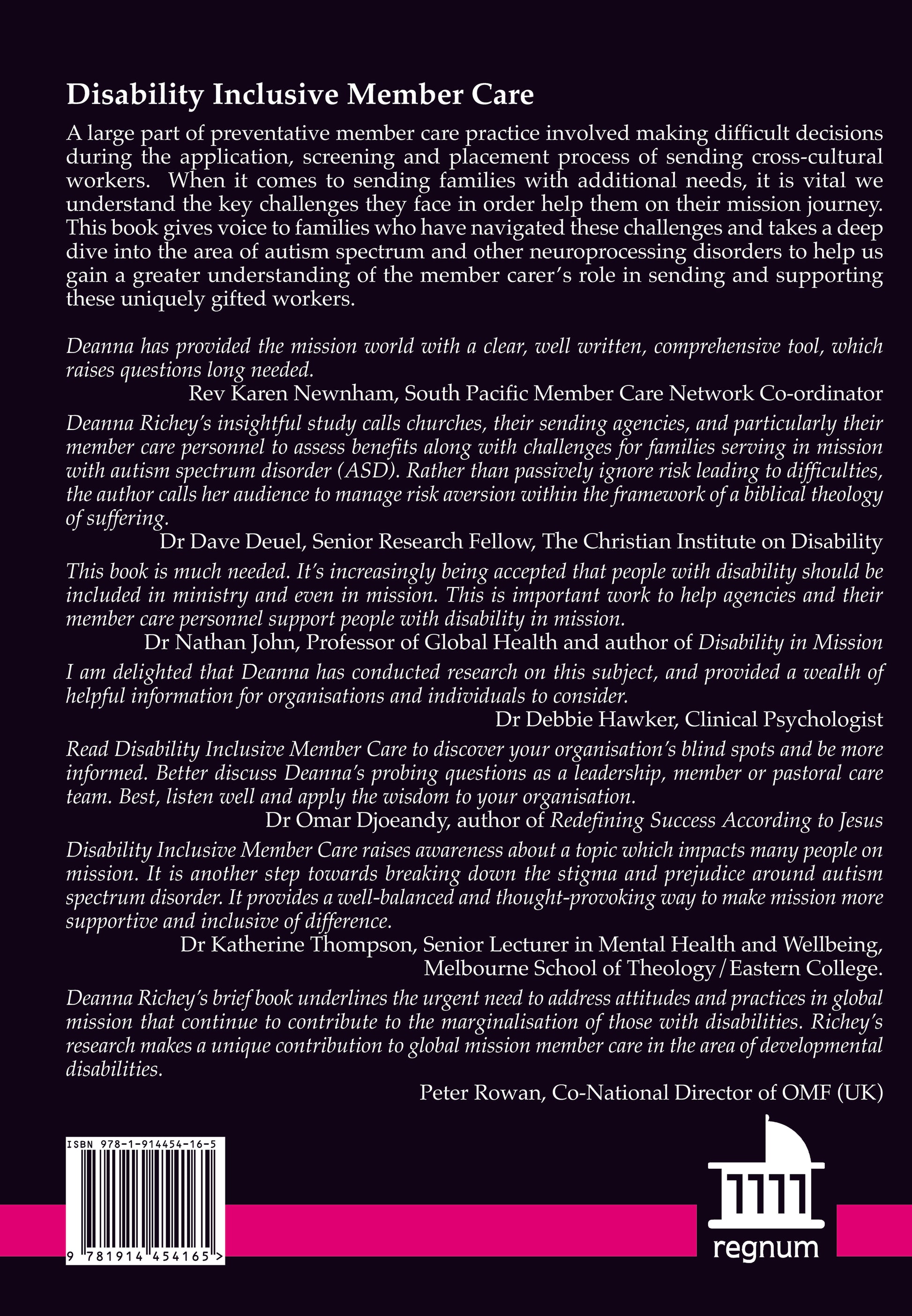A large part of preventative member care practice involved making difficult decisions during the application, screening and placement process of sending cross-cultural workers. When it comes to sending families with additional needs, it is vital we understand the key challenges they face in order help them on their mission journey. This book gives voice to families who have navigated these challenges and takes a deep dive into the area of autism spectrum and other neuroprocessing disorders to help us gain a greater understanding of the member carer’s role in sending and supporting these uniquely gifted workers.
