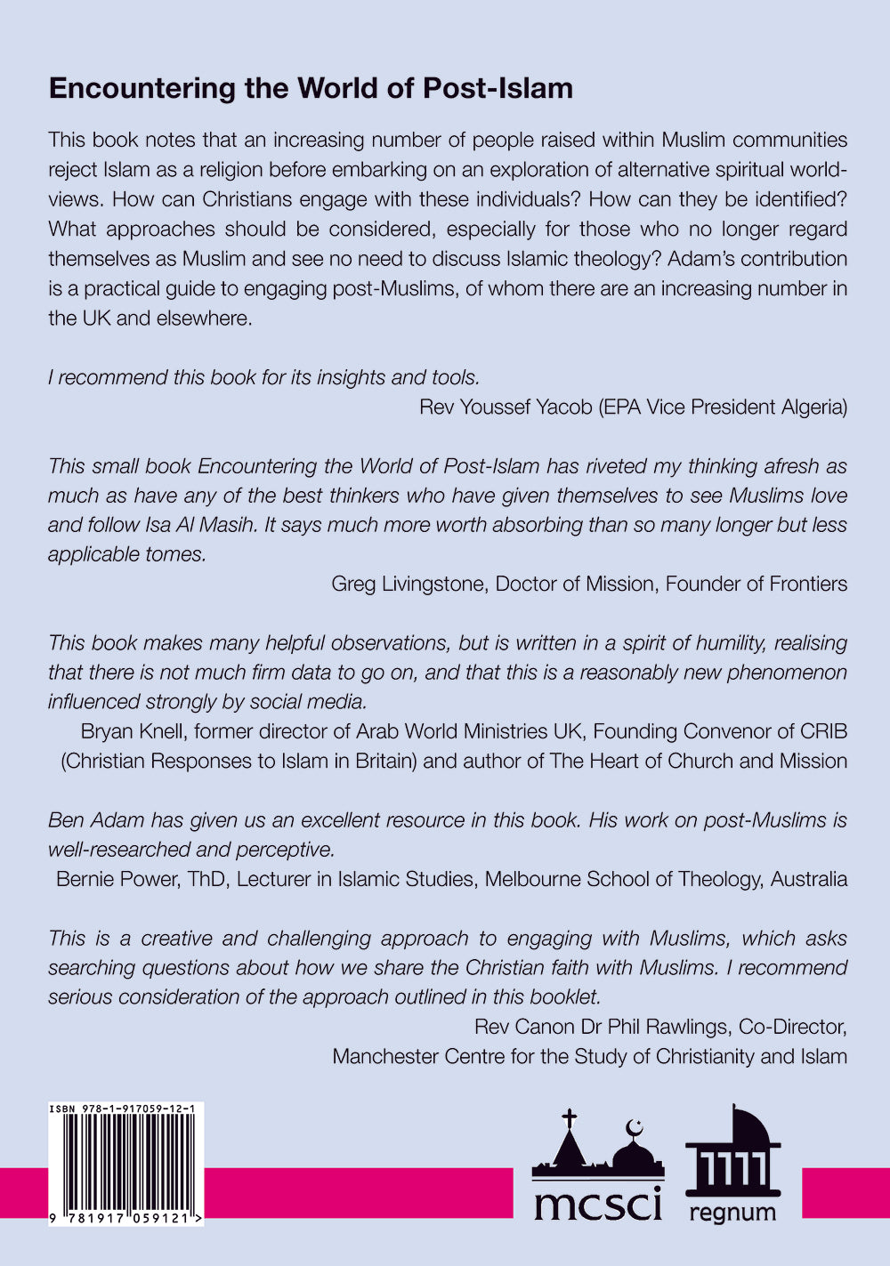 This small book Encountering the World of Post-Islam has riveted my thinking afresh as much as have any of the best thinkers who have given themselves to see Muslims love and follow Isa Al Masih. It says much more worth absorbing than so many longer but less applicable tomes.