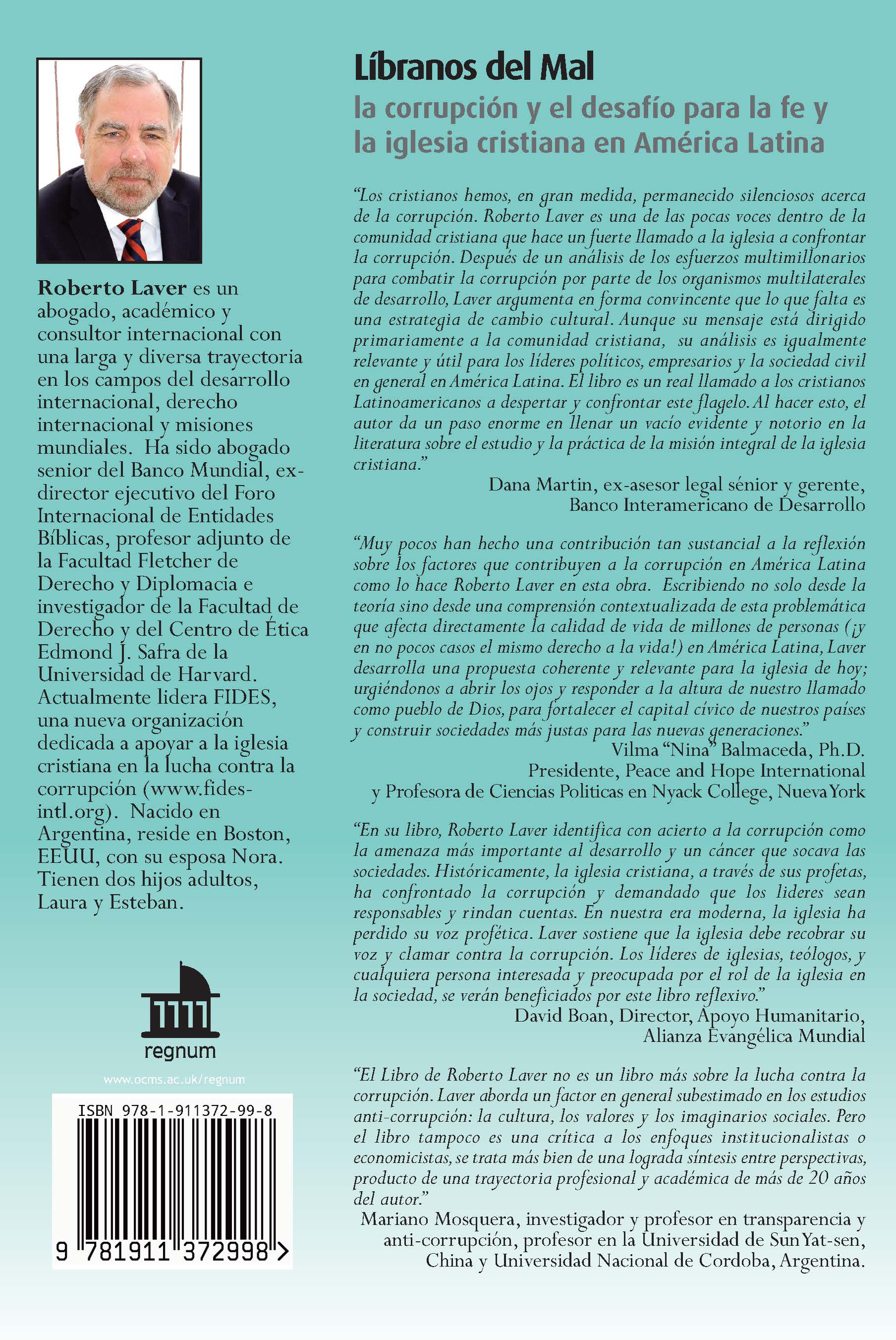Muy pocos han hecho una contribucion tan sustancial a la reflexion sobre los factores que contribuyen a la corrupcion en America Latina como lo hace Roberto Laver en esta obra. Escribiendo no solo desde la teoria sino desde una comprension contextualizada de esta problematica que afecta directamente la calidad de vida de millones de personas en America Latina, Laver desarolla una propuesta coherente y relevante para la iglesia de hoy; urgiendonos a abrir los ojos y responder a la altura de nuestro llamado como pueblo de Dios, para fortalecer el capital civico de nuestros paises y construir sociedades mas justas para las nuevas generaciones.