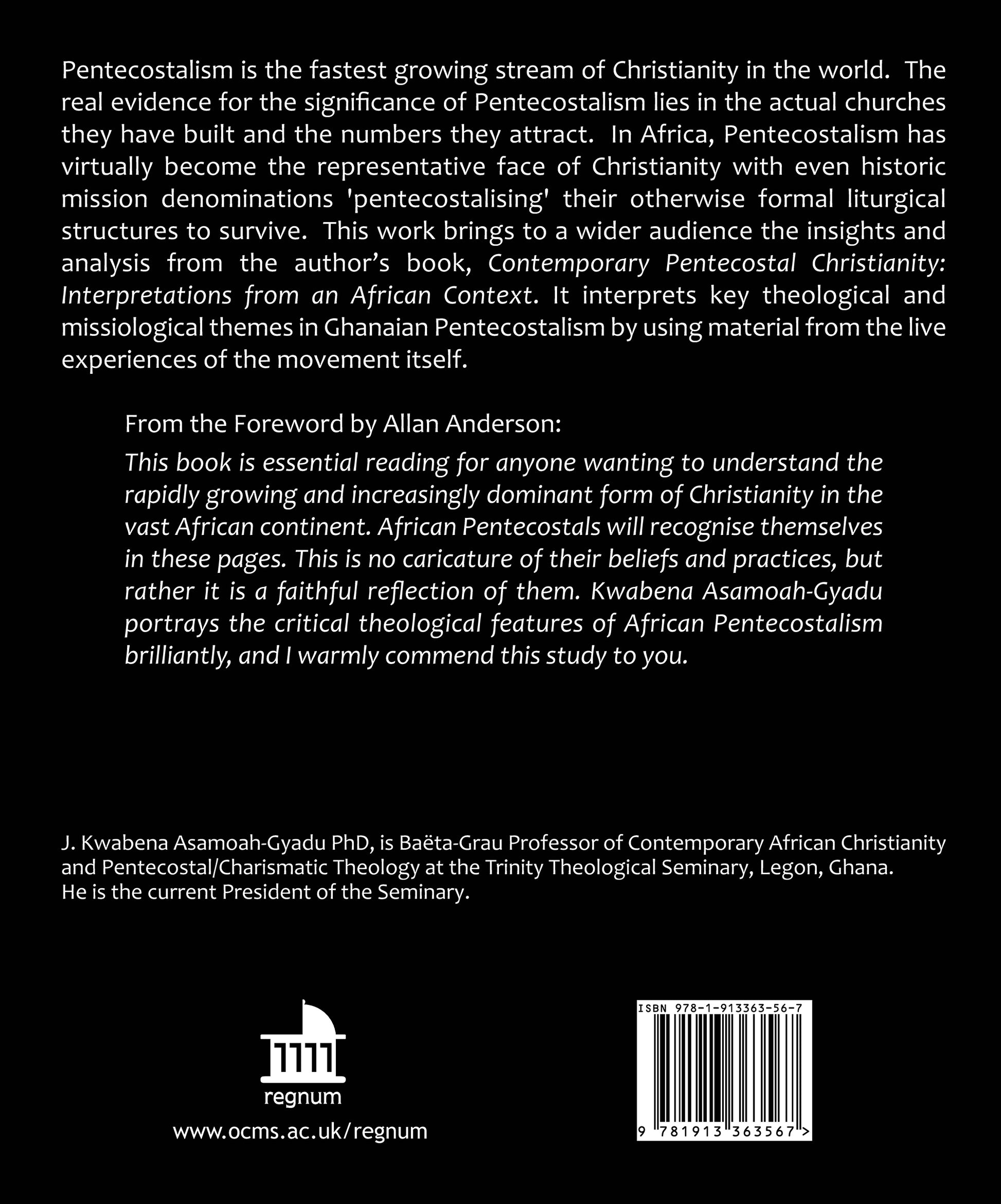 Pentecostalism is the fastest growing stream of Christianity in the world. The real evidence for the significance of Pentecostalism lies in the actual churches they have built and the numbers they attract. In Africa, Pentecostalism has virtually become the representative face of Christianity with even historic mission denominations 'pentecostalising' their otherwise formal liturgical structures to survive. This work brings to a wider audience the insights and analysis from the author’s book, Contemporary Pentecostal Christianity: Interpretations from an African Context. It interprets key theological and missiological themes in Ghanaian Pentecostalism by using material from the live experiences of the movement itself.