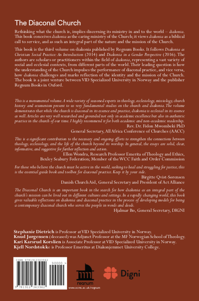 This book is the third volume on diakonia published by regnum Books. It follows Diakonia as Christian Social Practice: An Introduction and Diakonia in a Gender Perspective. For those who believe the church must be active in the world, seeking to heal and struggle for justice, this is the essential guide book and toolbox for diaconal practice.