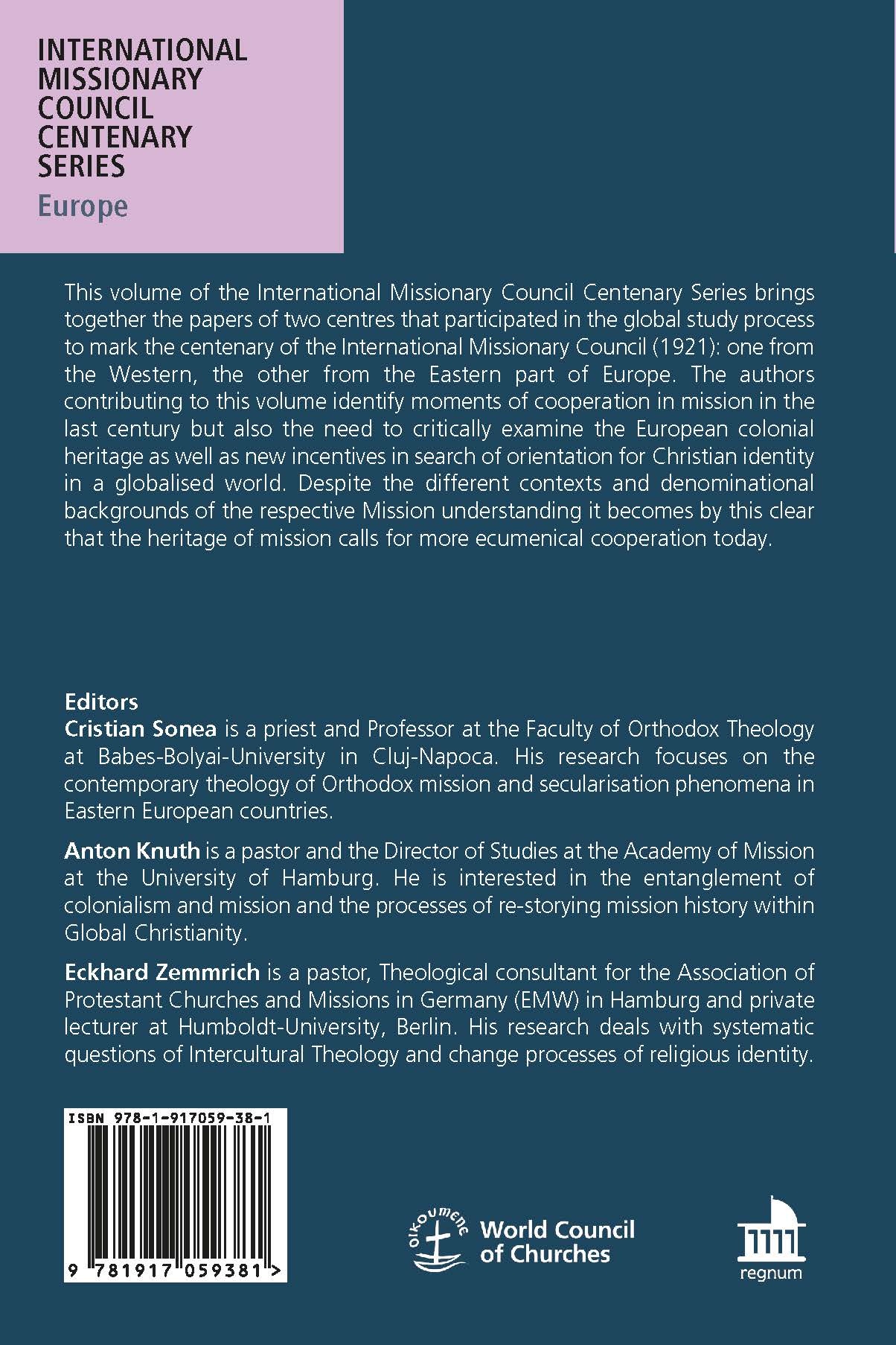 This volume of the International Missionary Council Centenary Series brings together the papers of two centres that participated in the global study process to mark the centenary of the International Missionary Council (1921): one from the Western, the other from the Eastern part of Europe. The authors contributing to this volume identify moments of cooperation in mission in the last century but also the need to critically examine the European colonial heritage as well as new incentives in search of orientation for Christian identity in a globalised world. Despite the different contexts and denominational backgrounds of the respective Mission understanding it becomes by this clear that the heritage of mission calls for more ecumenical cooperation today.